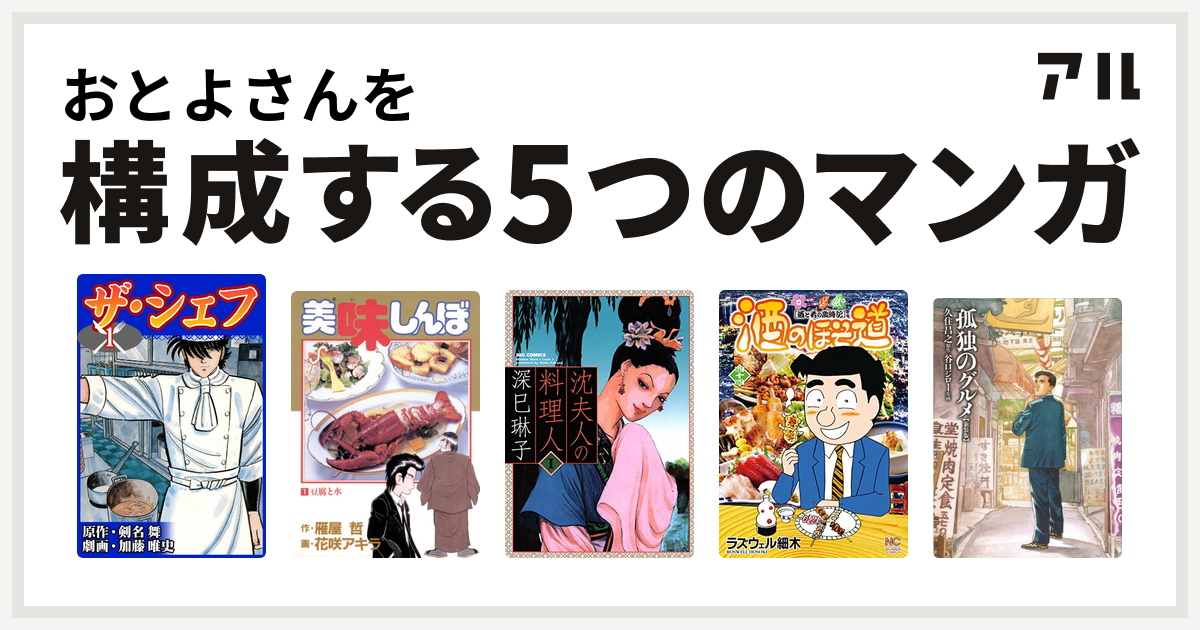おとよさんを構成するマンガはザ シェフ 美味しんぼ 沈夫人の料理人 酒のほそ道 孤独のグルメ 新装版 私を構成する5つのマンガ アル